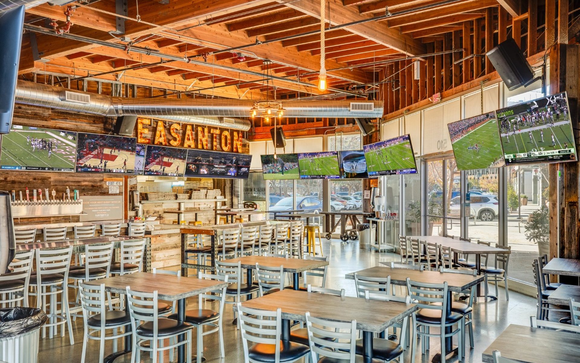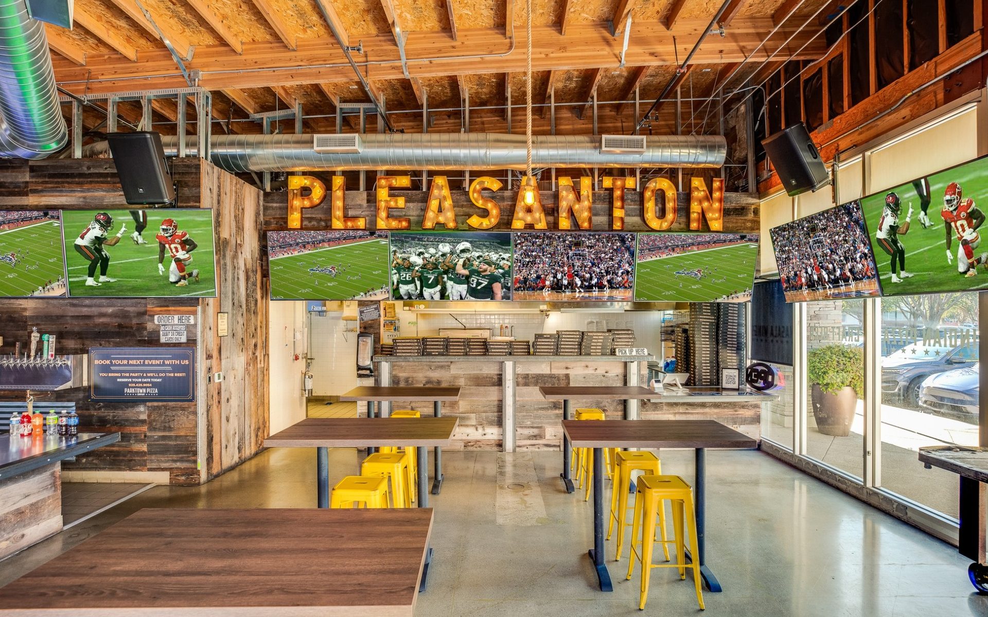 Very friendly service and awesome vibes. Food was amazing and atmosphere was very inviting with 28 TVs available to view a WIDE variety of games while dining in.