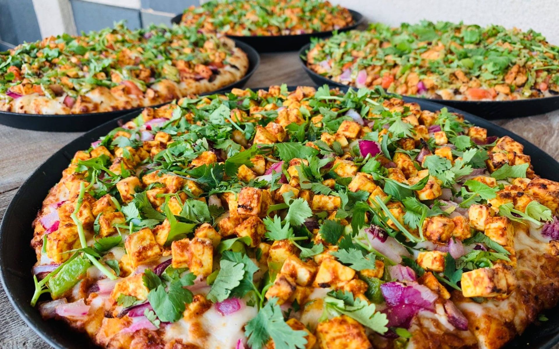 We are known for Hawaiian Pizza, Chicken Salad, Grilled Chicken Salad, Tandoori Wings, Italian Food, Kebab, Pepperoni Pizza, Street Tacos, BBQ Chicken Pizza, Chicken Tacos, Wings, Vegetarian Food, Chili, American Food, Indian Food, Samosas, Chutneys, Indian Pizza, Butter Chicken, Supreme Pizza, Mozzarella Sticks, Curry, Indian, Chicken Sandwich, Grilled Chicken, Cheesy Breadsticks, Salads, Chicken Wings, Fries, Breadsticks, Cheese Bread, Tandoori Chicken, Buffalo Chicken Pizza, Tacos, and Thin Crust Pizza